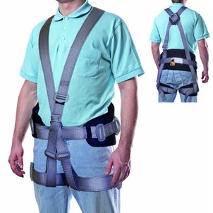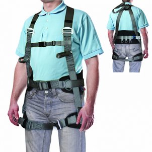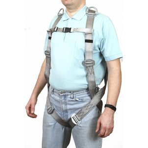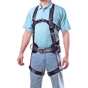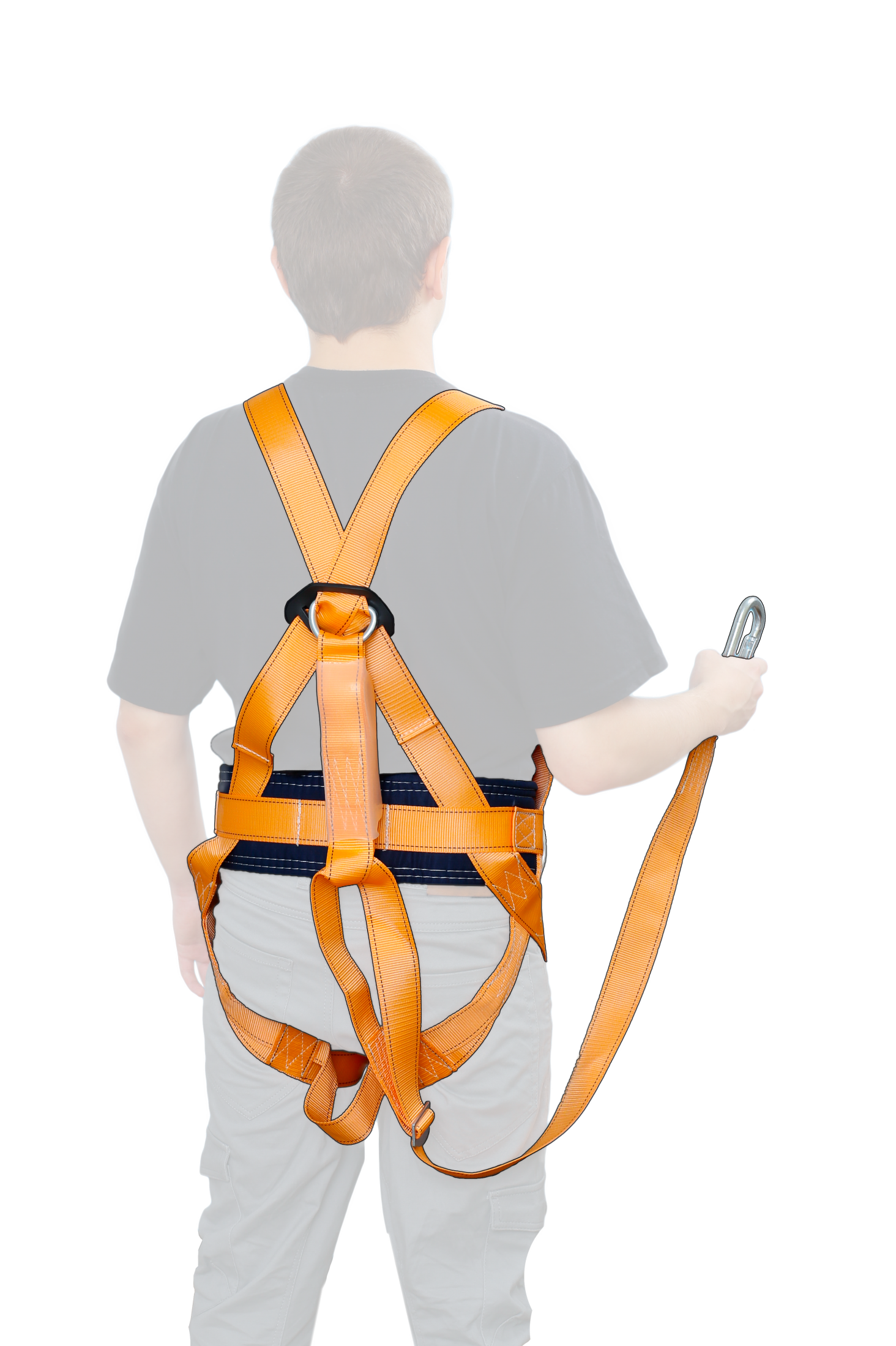 Страховочная привязь с наплечными и набедренными лямками- компонент страховочной системы для охвата тела человека с целью защиты тела работника при непредвиденном падении с высоты. Высокий (150мм) прошитый кушак обеспечивает максимальное удобство при длительном выполнении работ. Имеет три элемента крепления: два D-образных элемента крепления расположены по бокам привязи и одно на спине. Наличие регулируемых застёгивающих пряжек на наплечных и набедренных лямках позволяет за минимально короткое время подогнать привязь по размеру. Наличие вспомогательной ленты с застёжкой на груди позволяют быстро отстегуть и пристегнуть привязь. Строп подбирается, исходя из специфики задач. Рекомендуется использовать стропы с амортизатором для уменьшения силы рывка при падении.