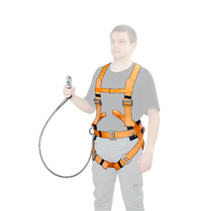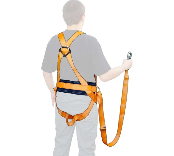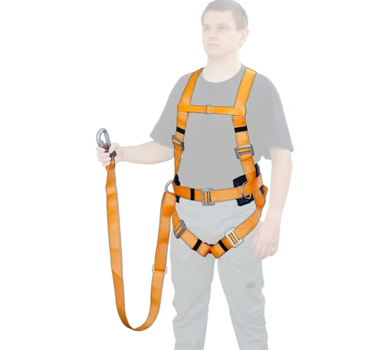Страховочная привязь с наплечными и набедренными лямками- компонент страховочной системы для охвата тела человека с целью защиты тела работника при непредвиденном падении с высоты. Высокий (150мм) прошитый кушак обеспечивает максимальное удобство при длительном выполнении работ. Имеет три элемента крепления: два D-образных элемента крепления расположены по бокам привязи и одно на спине. Наличие регулируемых застёгивающих пряжек на наплечных и набедренных лямках позволяет за минимально короткое время подогнать привязь по размеру. Наличие вспомогательной ленты с застёжкой на груди позволяют быстро отстегуть и пристегнуть привязь. Строп подбирается, исходя из специфики задач. Рекомендуется использовать стропы с амортизатором для уменьшения силы рывка при падении.