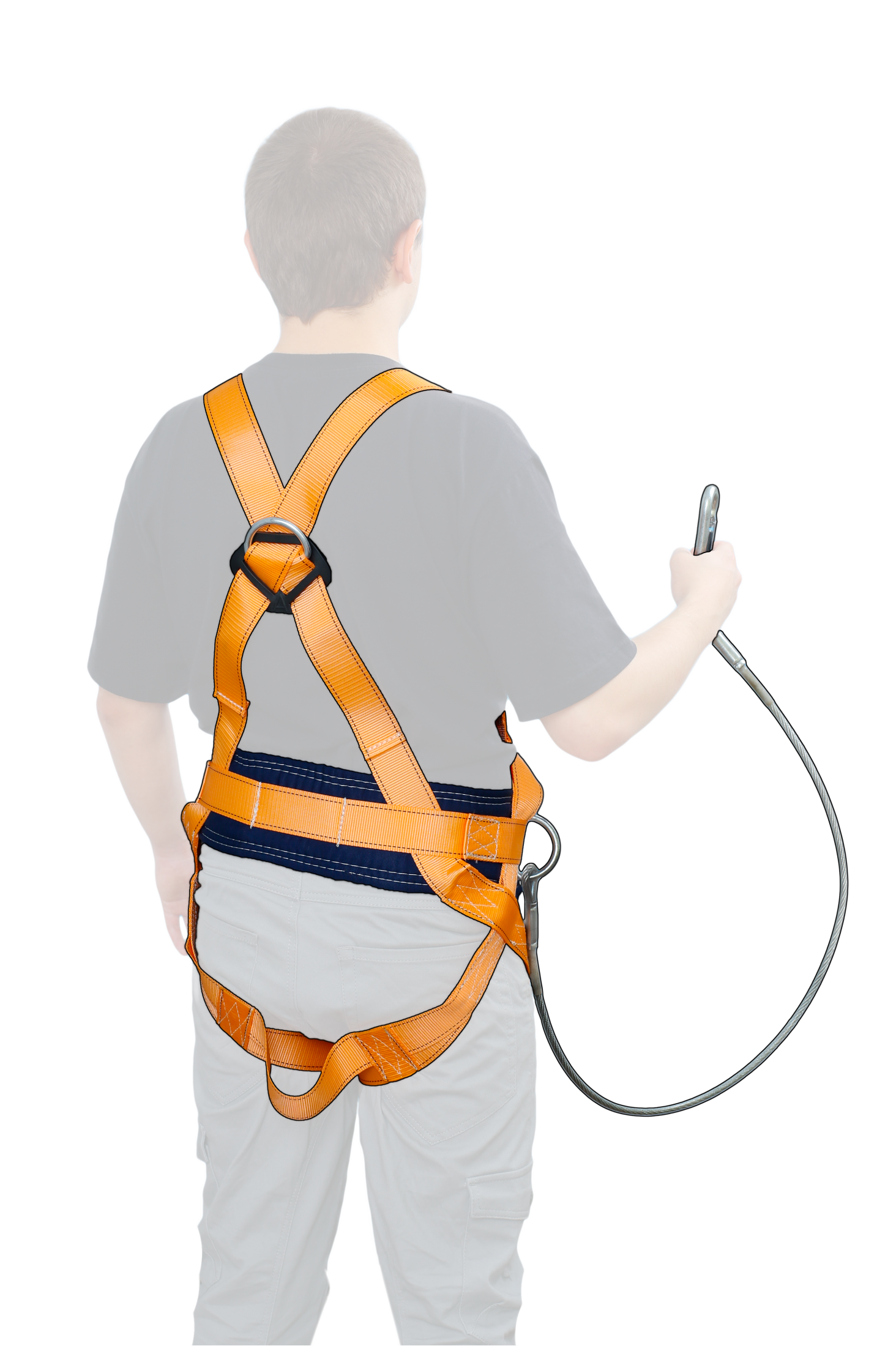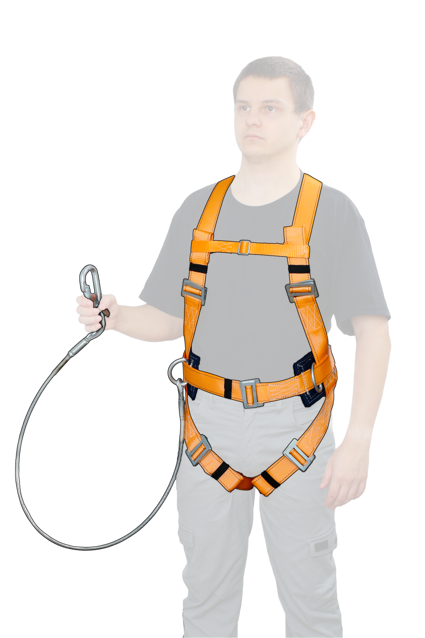Страховочная привязь с наплечными и набедренными лямками- компонент страховочной системы для охвата тела человека с целью защиты тела работника при непредвиденном падении с высоты. Высокий (150мм) прошитый кушак обеспечивает максимальное удобство при длительном выполнении работ. Имеет три элемента крепления: два D-образных элемента крепления расположены по бокам привязи и одно на спине. Наличие регулируемых застёгивающих пряжек на наплечных и набедренных лямках позволяет за минимально короткое время подогнать привязь по размеру. Наличие вспомогательной ленты с застёжкой на груди позволяют быстро отстегуть и пристегнуть привязь. Строп подбирается, исходя из специфики задач. Рекомендуется использовать стропы с амортизатором для уменьшения силы рывка при падении.