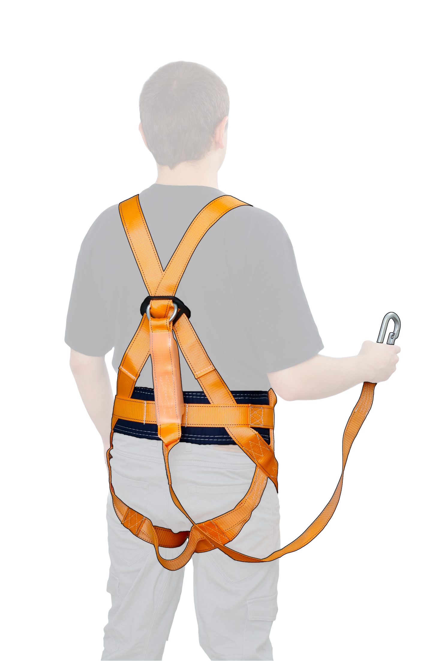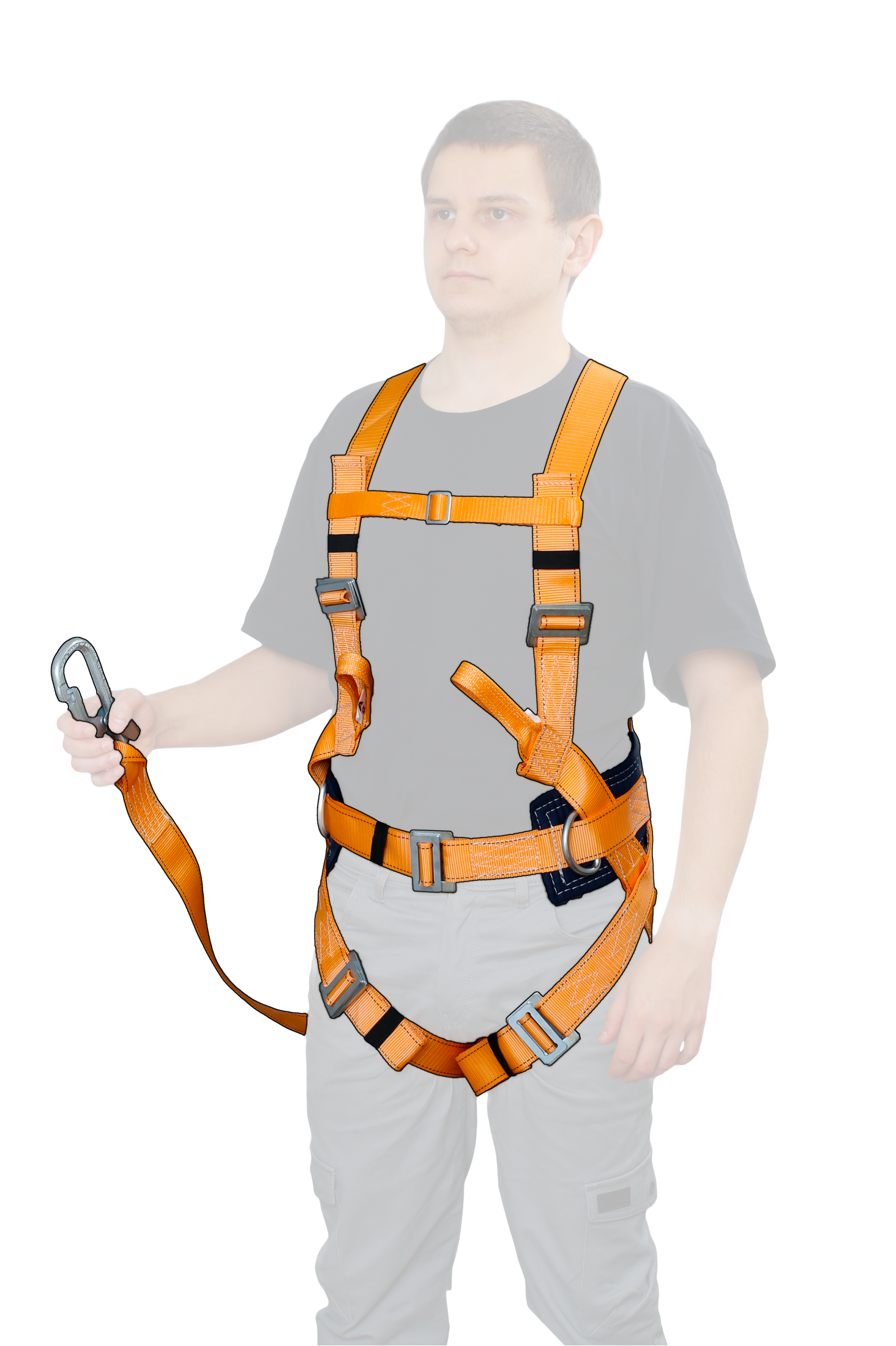 Имеет четыре элемента крепления: два D-образных элемента крепления расположены по бокам привязи, одно на спине и анкерная петля на груди.Наличие регулируемых застёгивающих пряжек на наплечных и набедренных лямках позволяют за минимально короткое время подогнать привязь по размеру.