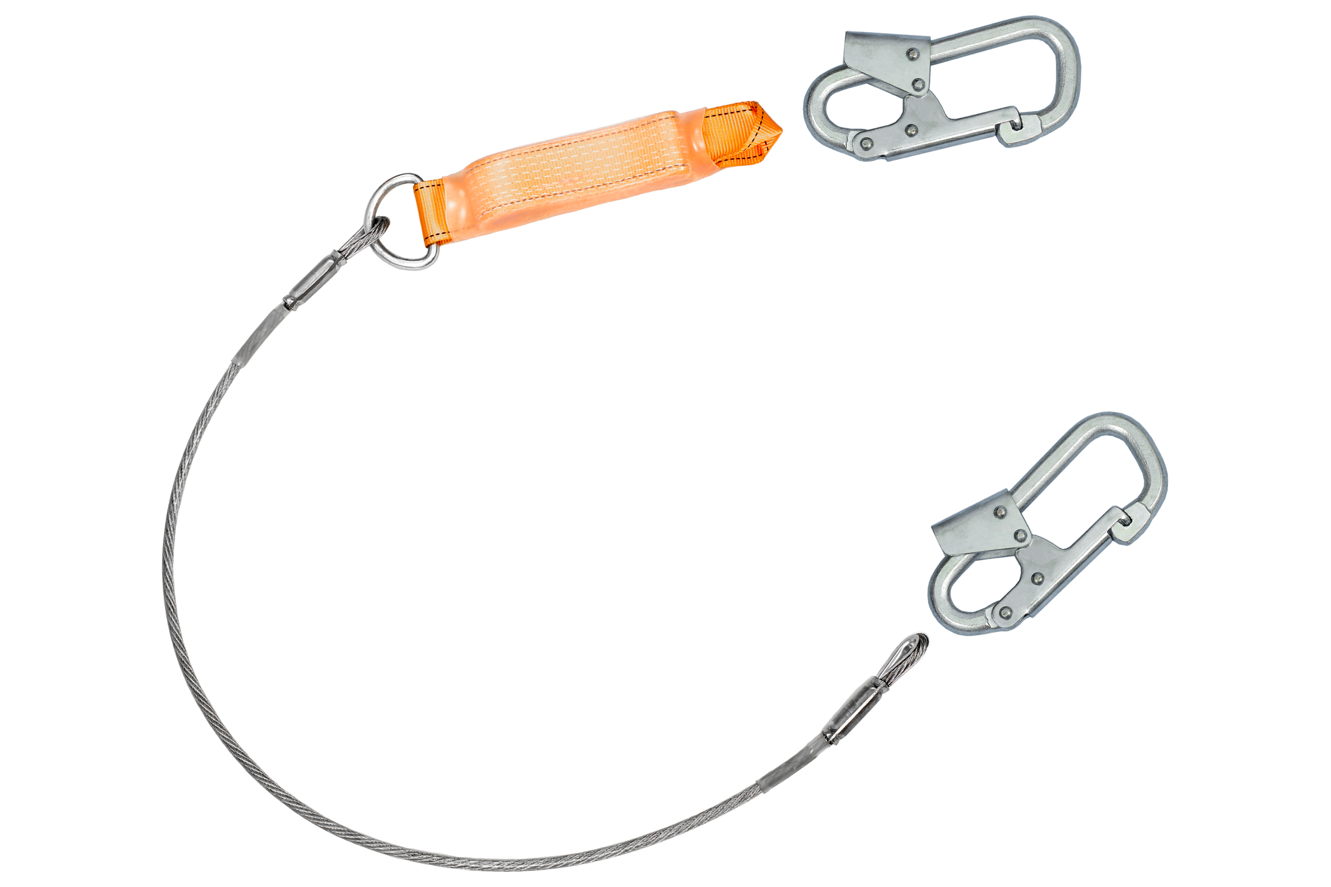 Строп из стального троса в защитной оболочке с карабином используется как средство индивидуальной защиты от падения с высоты, может применяться как отдельная соединительная деталь, узел или компонент в системе с привязями и с анкерной точкой. Обжимные втулки концевых соединений выполнены из эластичного металлического материала.