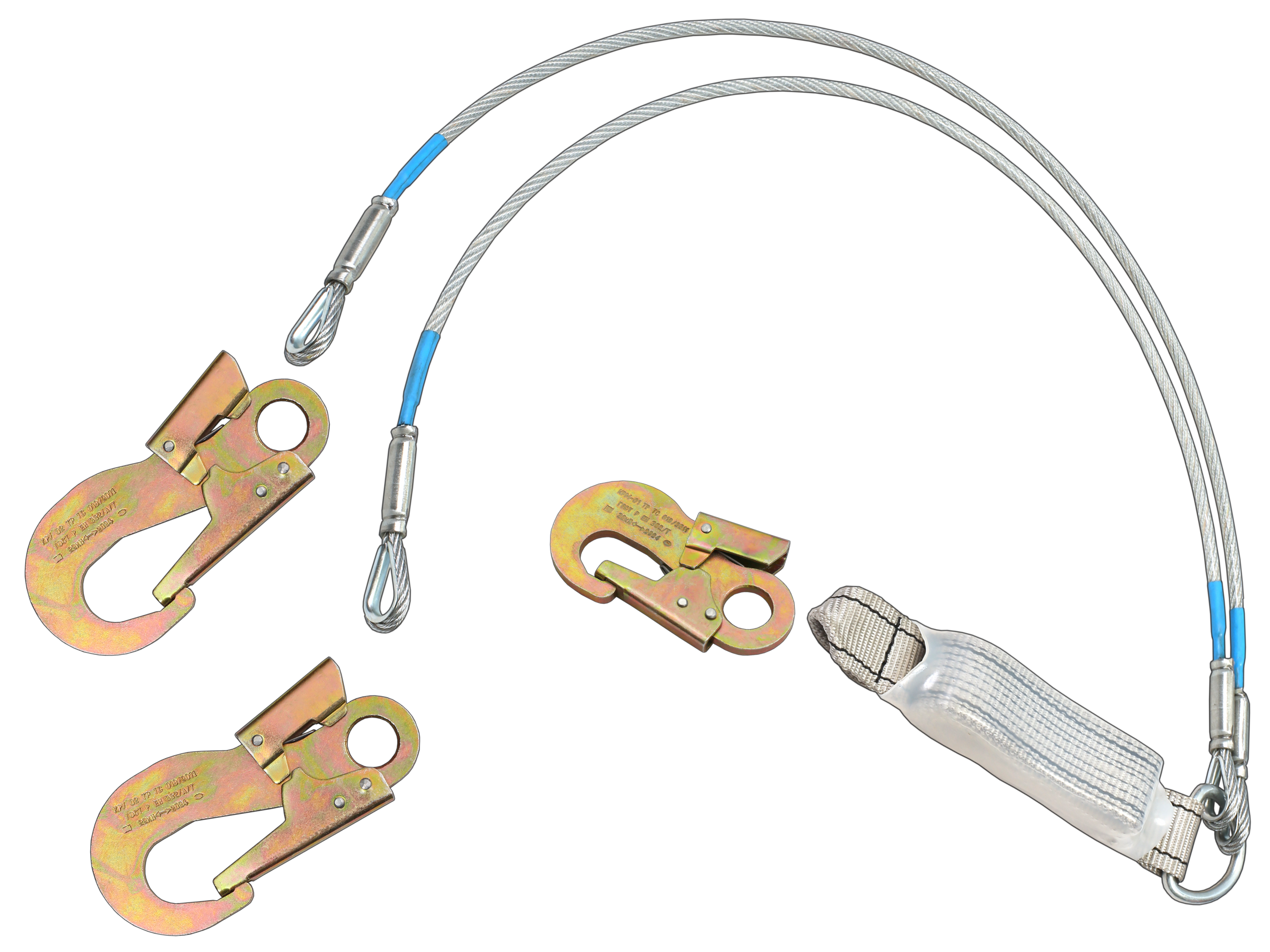Строп из стального троса в защитной оболочке с карабином используется как средство индивидуальной защиты от падения с высоты, может применяться как отдельная соединительная деталь, узел или компонент в системе с привязями и с анкерной точкой. Обжимные втулки концевых соединений выполнены из эластичного металлического материала.