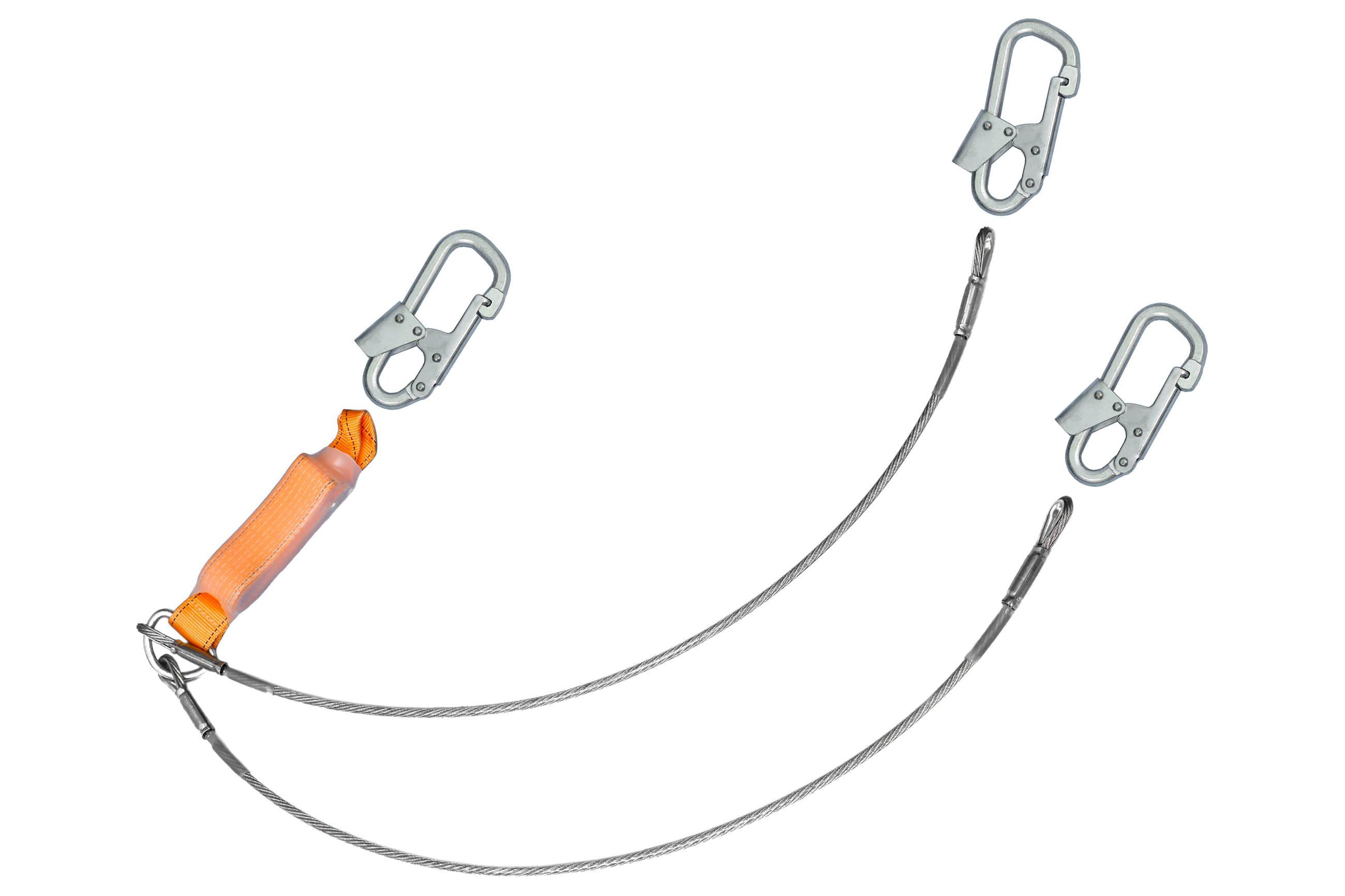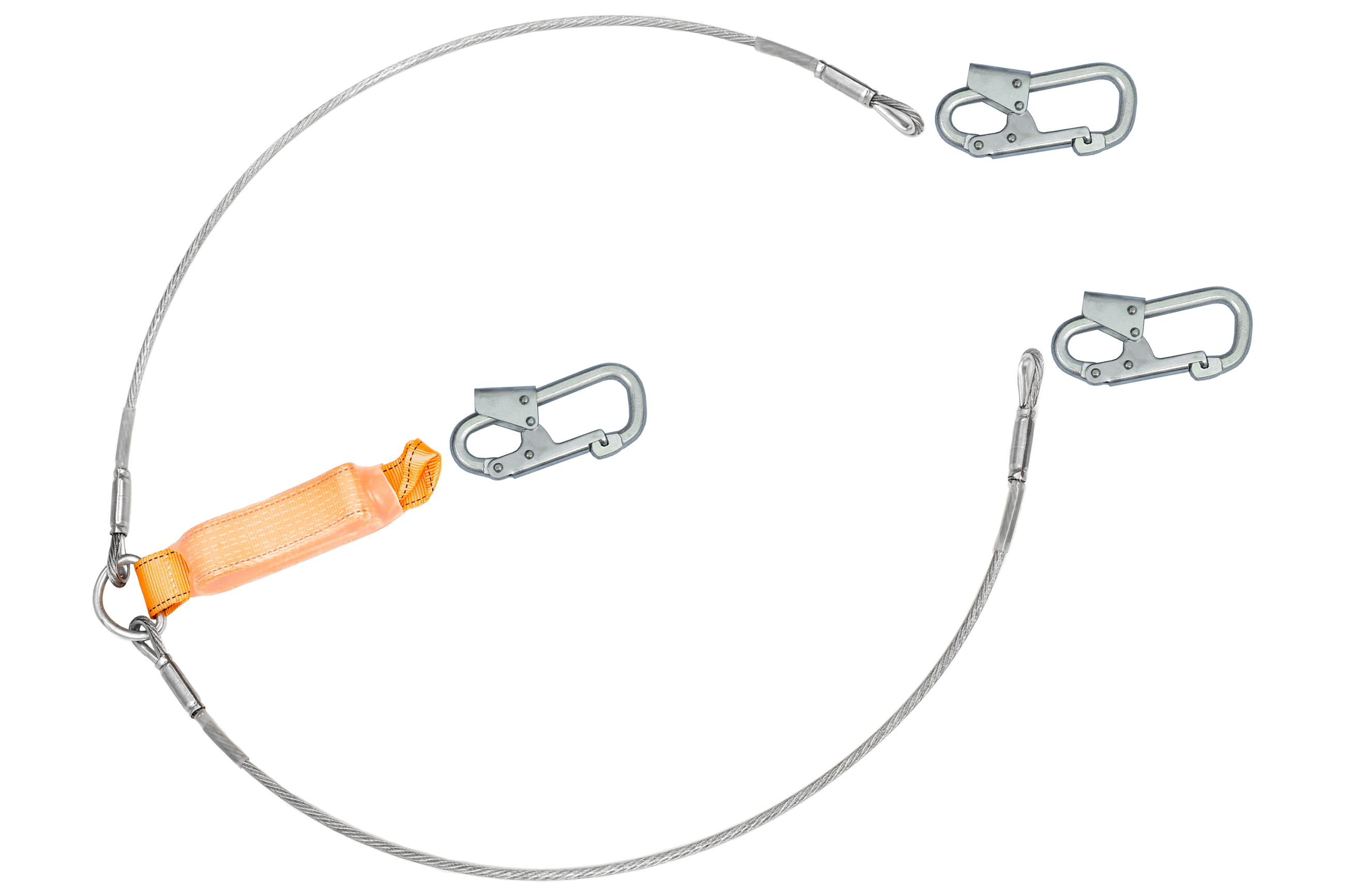 Строп из стального троса в защитной оболочке с карабином используется как средство индивидуальной защиты от падения с высоты, может применяться как отдельная соединительная деталь, узел или компонент в системе с привязями и с анкерной точкой. Обжимные втулки концевых соединений выполнены из эластичного металлического материала.