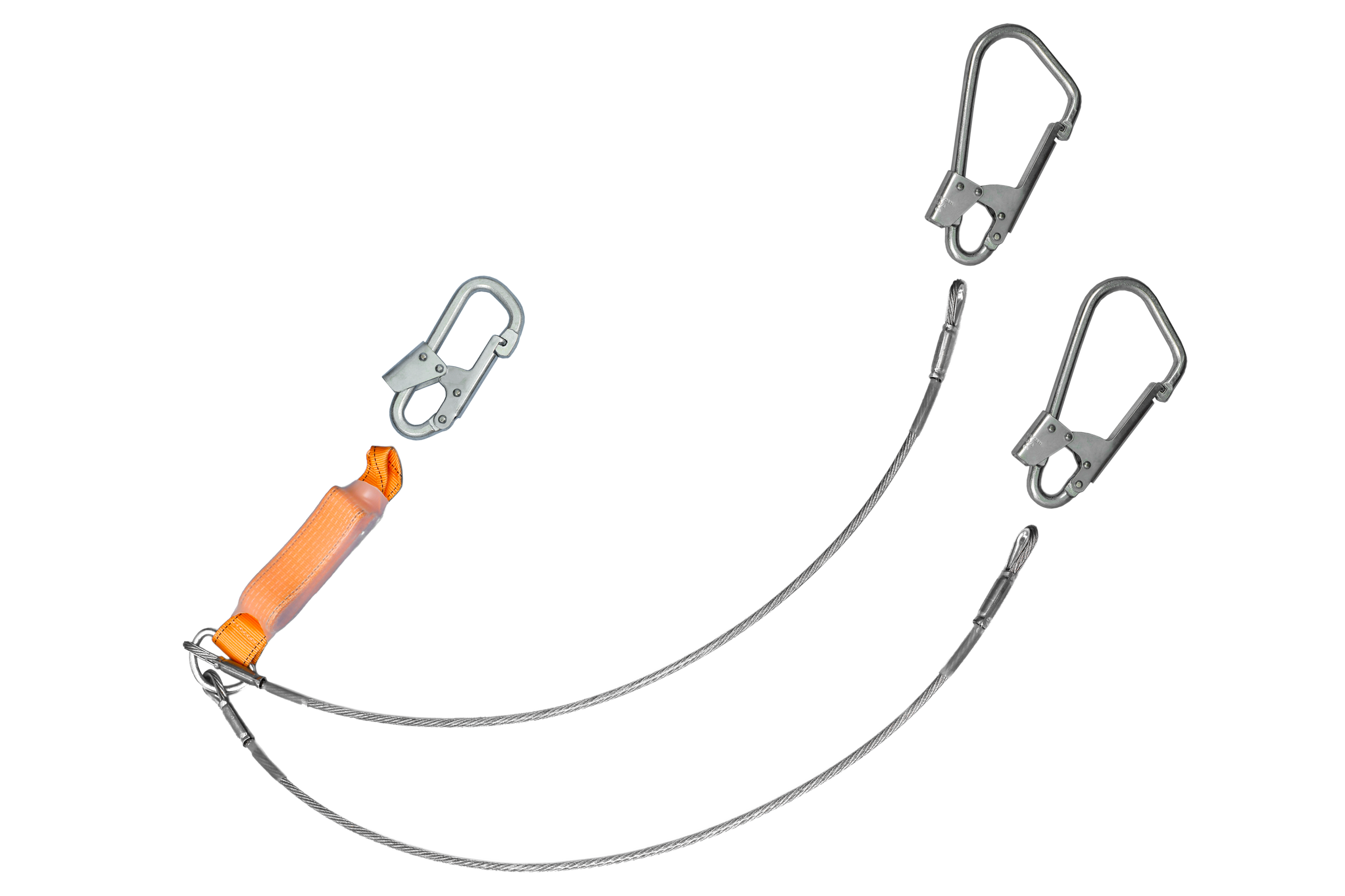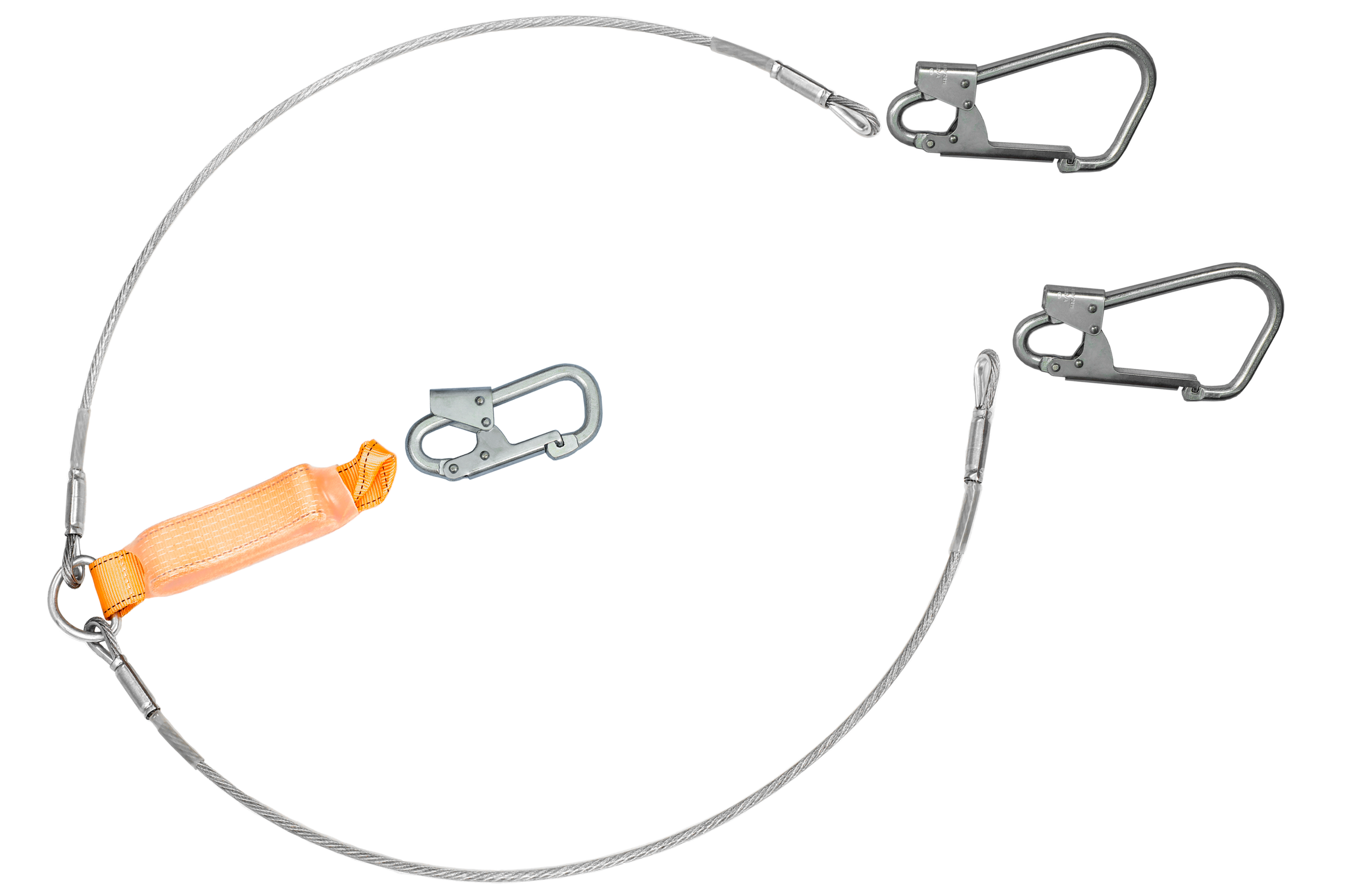 Строп из стального троса в защитной оболочке с карабином используется как средство индивидуальной защиты от падения с высоты, может применяться как отдельная соединительная деталь, узел или компонент в системе с привязями и с анкерной точкой. Обжимные втулки концевых соединений выполнены из эластичного металлического материала.