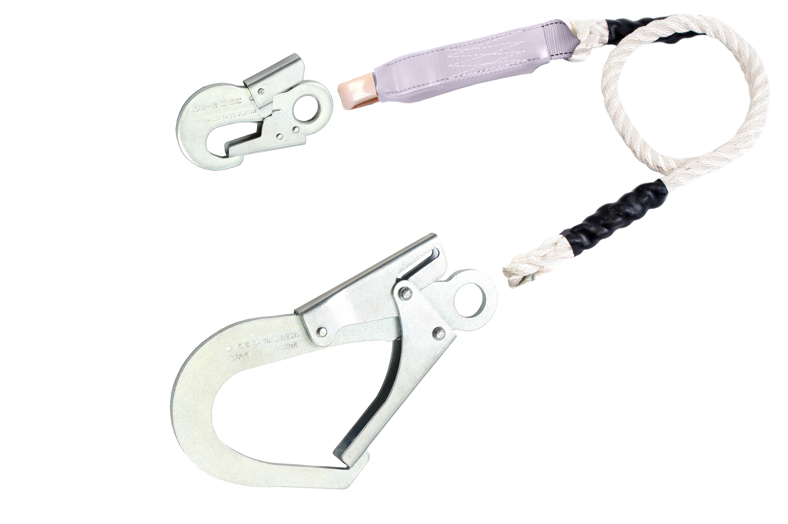 Строп из полиамидного каната ф13 мм с карабином, используется как средство индивидуальной защиты от падения с высоты, может применяться как отдельная соединительная деталь, узел или компонент в системе с привязями и с анкерной точкой.