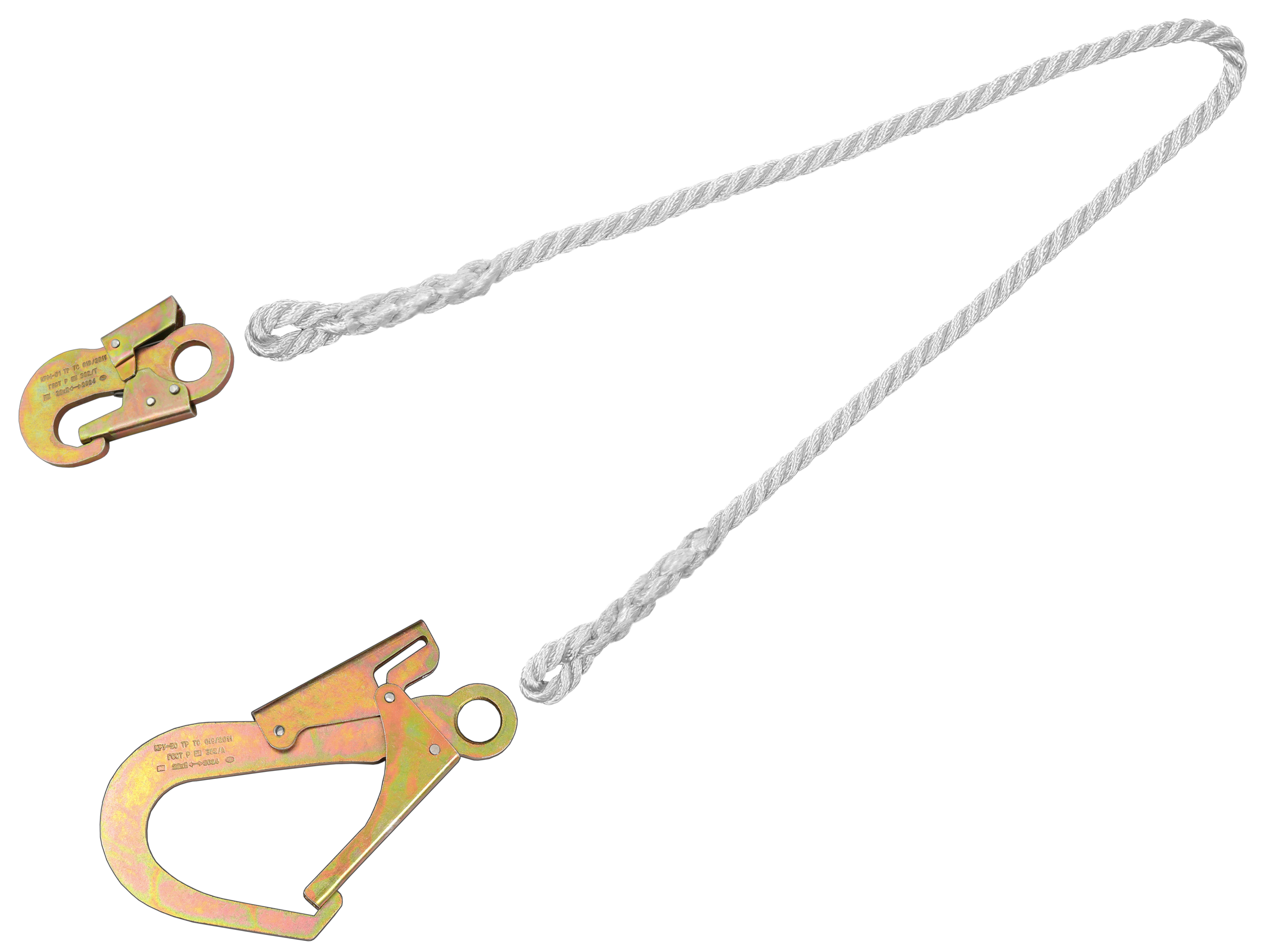 Строп из полиамидного каната ф13 мм с карабином, используется как средство индивидуальной защиты от падения с высоты, может применяться как отдельная соединительная деталь, узел или компонент в системе с привязями и с анкерной точкой.