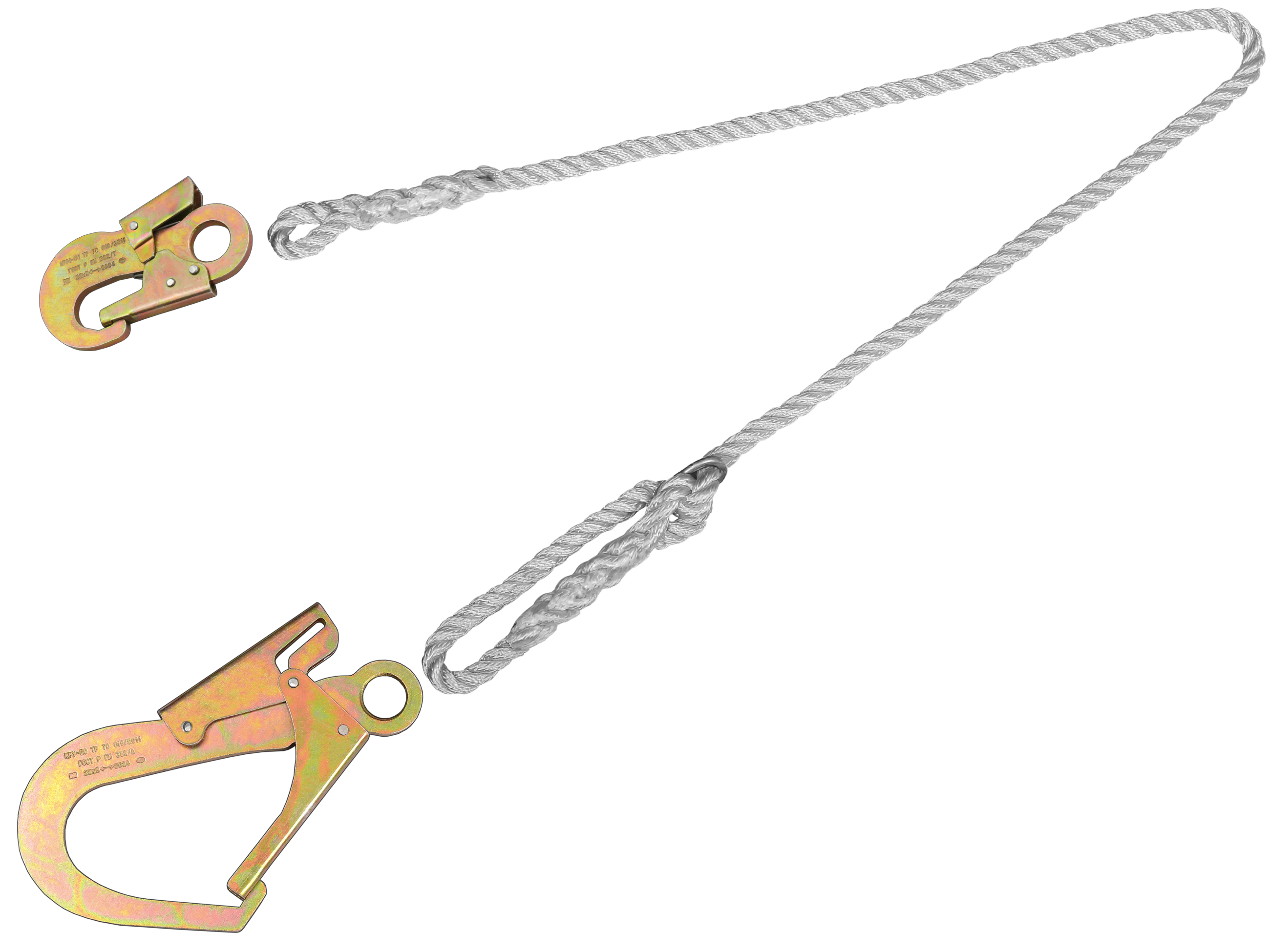 Строп регулируемый из полиамидного каната ф13 мм с карабином, используется как средство индивидуальной защиты от падения с высоты, может применяться как отдельная соединительная деталь, узел или компонент в системе с привязями и с анкерной точкой, дополнительно снабжён регулируемой пряжкой, позволяющей удлинить или укоротить строп.